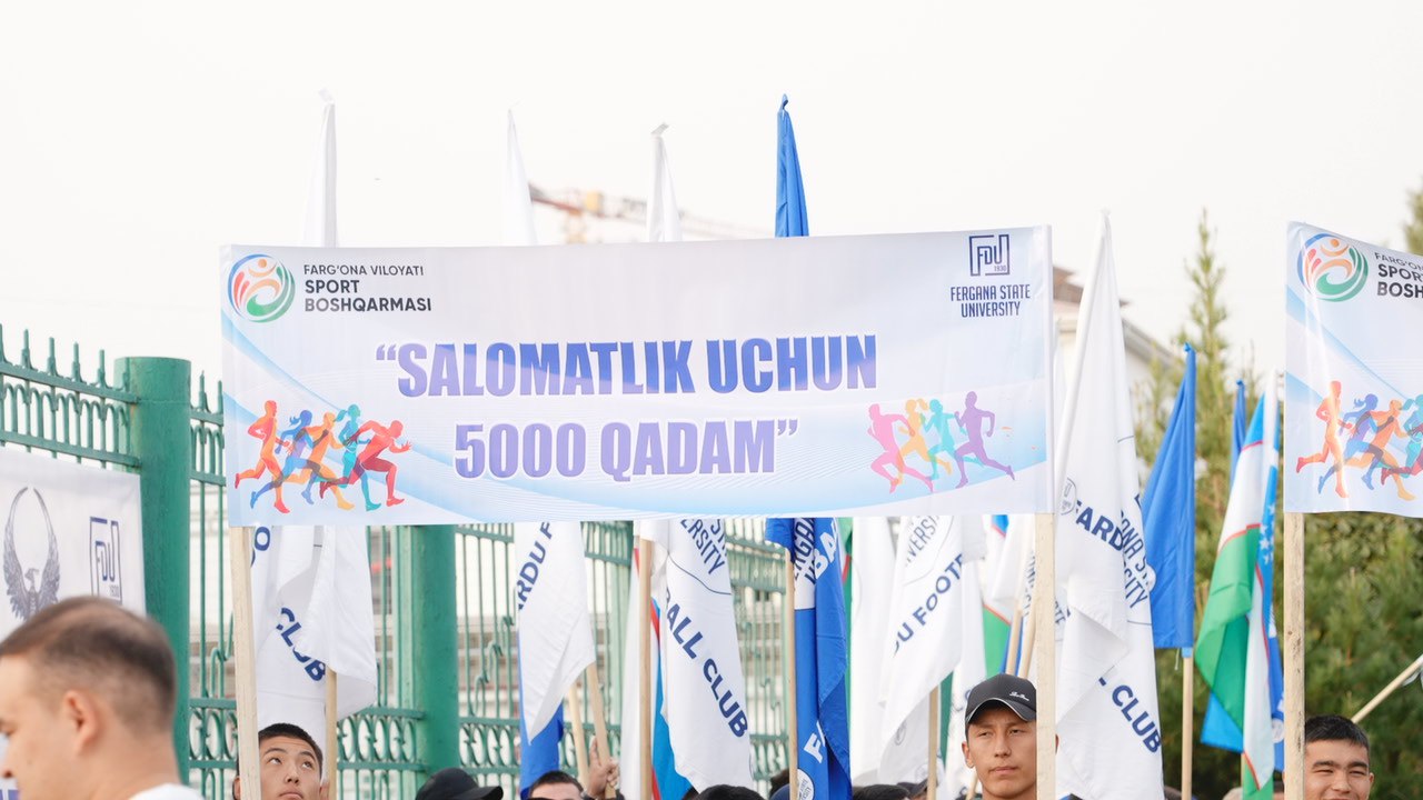 Farg‘ona davlat universitetida sog‘lom turmush tarzini targ‘ib qilish maqsadida “Salomatlik uchun 5000 qadam” loyihasi muvaffaqiyatli o‘tkazildi. Ushbu tadbir universitet professor-o‘qituvchilari, ishchi xodimlari va faol talaba yoshlarni birlashtirdi.