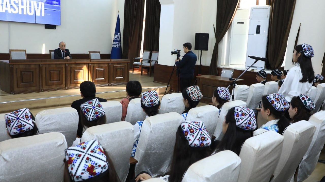 Uchrashuv chog‘ida rektor ta’lim va ilm-fan yo‘nalishida amalga oshirilayotgan islohotlar haqida so‘z yuritdi. U o‘z nutqida: