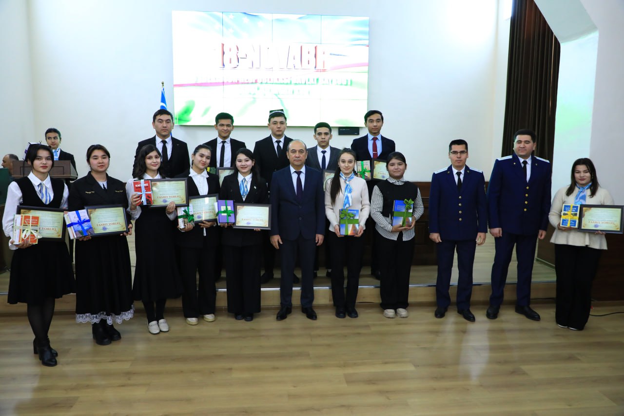 Tadbir davomida talaba-yoshlar o‘rtasida Davlat bayrog‘i va davlat ramzlariga bag‘ishlangan qiziqarli viktorina o‘tkazildi. Faol ishtirok etgan talabalarga esdalik sovg‘alari — kitoblar jamlanmasi topshirildi. Bu esa yoshlarning davlat ramzlariga oid bilimlarini mustahkamlash, ularni ilm-fanga qiziqtirishda muhim qadam bo‘ldi.