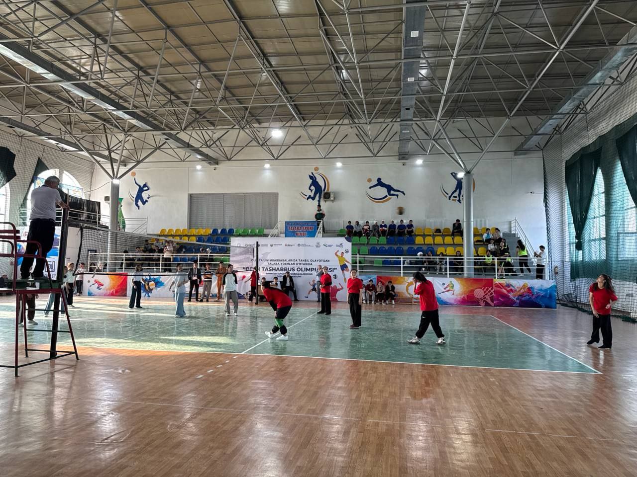 “BESH TASHABBUS OLIMPIADASI” DOIRASIDA QIZLAR O’RTASIDA VOLLEYBOL MUSOBAQALARI BOSHLANDI