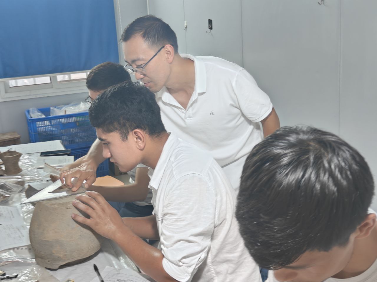 Restavratsiya darslari Luoyang arxeologiya instituti yetakchi mutaxassislari — Zhang Zhengqian va Li Gangzheng tomonidan olib borilmoqda. Ular o‘z tajribalari bilan o‘rtoqlashar ekan, nafaqat texnik bilimlar, balki arxeologik yondashuv va madaniy muloqot bo‘yicha ham qimmatli maslahatlar bermoqda.