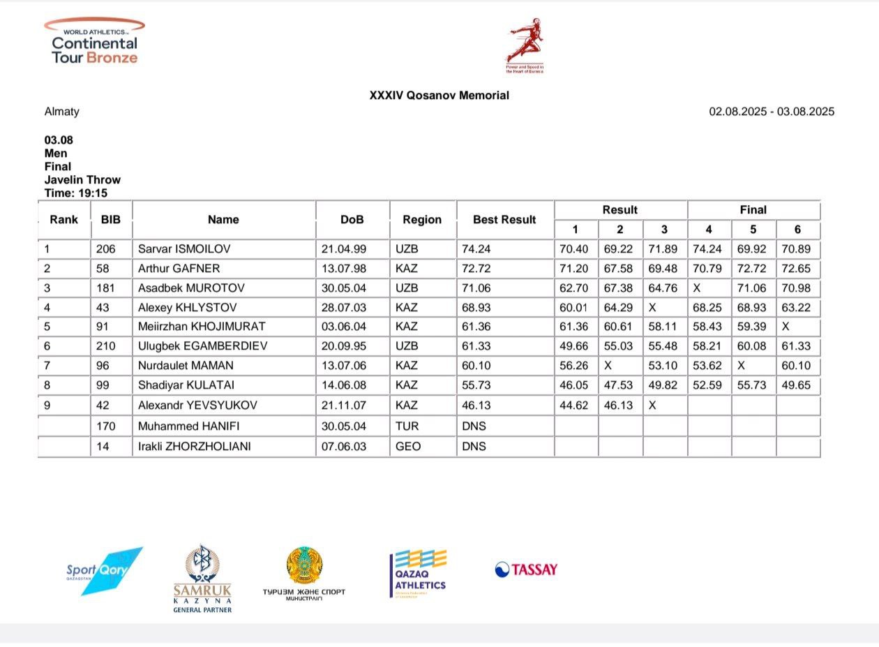 Аsadbek musobaqada nayza tashlash boʼyicha 71,06 metrlik natija koʼrsatib, kuchli raqiblar orasidan 3-oʼrinni qoʼlga kiritdi.