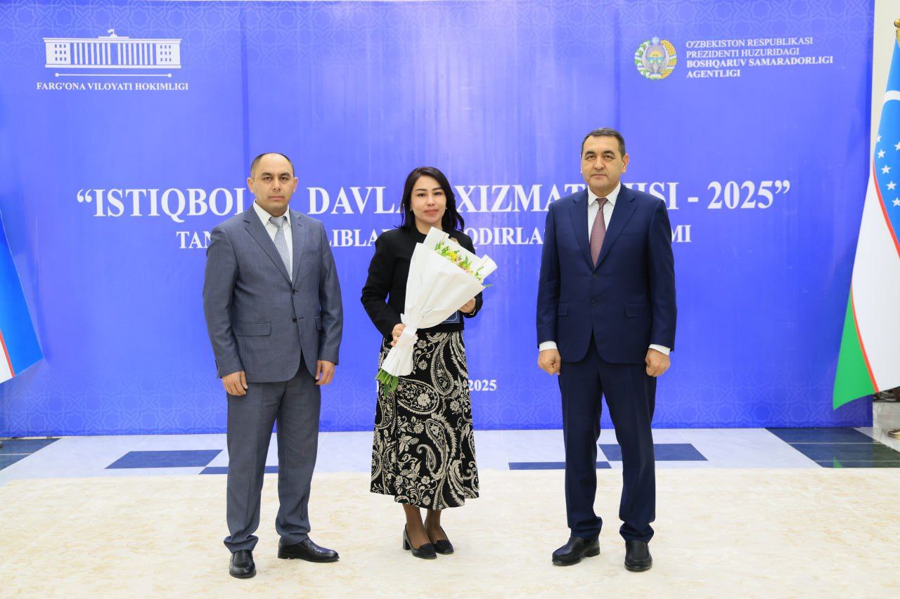 Farg‘ona viloyatida ilk bor Boshqaruv samaradorligi agentligi hamda viloyat hokimligi hamkorligida “Istiqbolli davlat xizmatchisi – 2025” tanlovi o‘tkazildi. Ushbu tanlov yosh mutaxassislarning boshqaruv ko‘nikmalarini rivojlantirish, davlat xizmatida samarali faoliyat yurita oladigan malakali kadrlar zaxirasini shakllantirishni maqsad qilgan.