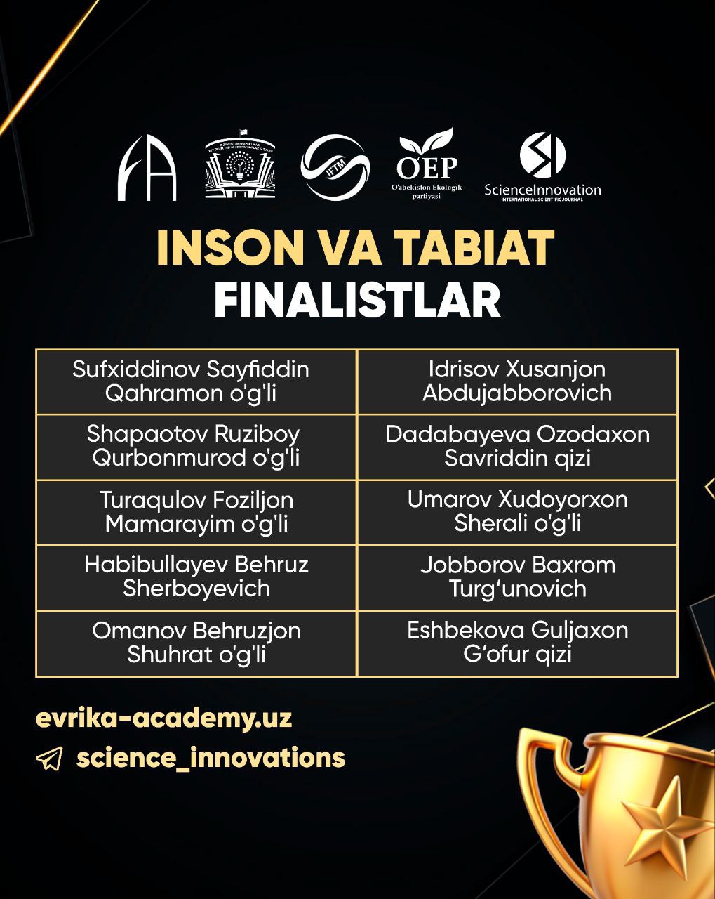 “INSON VA TABIAT” TANLOVI FINALISTLARI ANIQLANDI!
