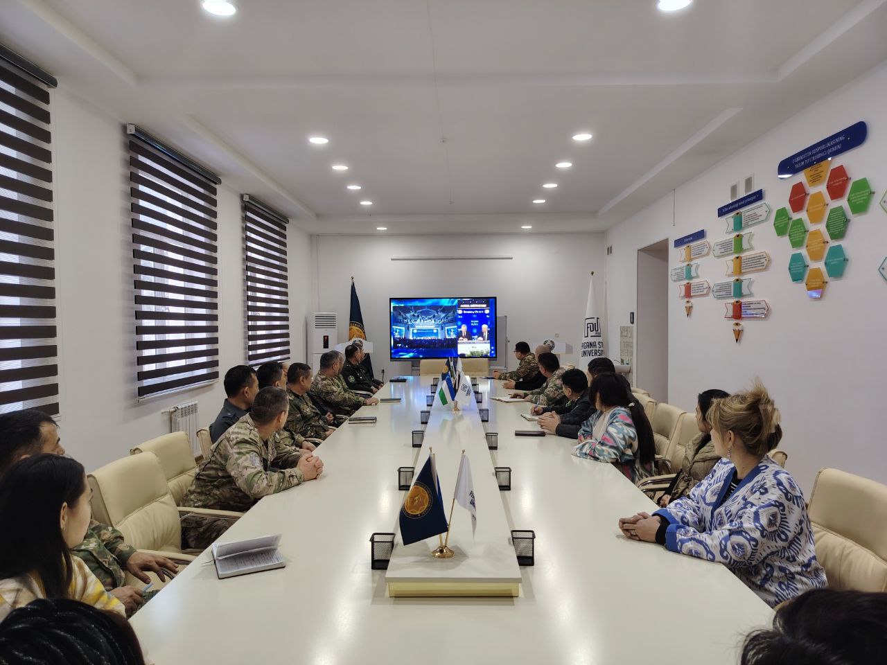Shuningdek, Harbiy ta’lim fakultetida tashkil etilgan tadbirda ofitser-o‘qituvchilar va ishchi-xodimlar ishtirok etib, mamlakatimiz xavfsizligi, barqarorlik va tinchlikni mustahkamlash borasida amalga oshirilayotgan siyosiy islohotlar yuzasidan fikr almashildi.