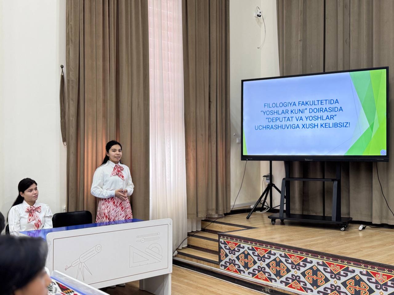 Tadbir davomida talabalar o‘zlarini qiziqtirgan savollar bilan murojaat qildilar. Ayniqsa, filologiya yo‘nalishida tahsil olayotgan yoshlar uchun ilmiy izlanishlar, xorijiy tajriba almashinuvi va bandlik masalalari muhim mavzu bo‘ldi. Deputat tomonidan har bir savolga batafsil va asosli javoblar berildi.