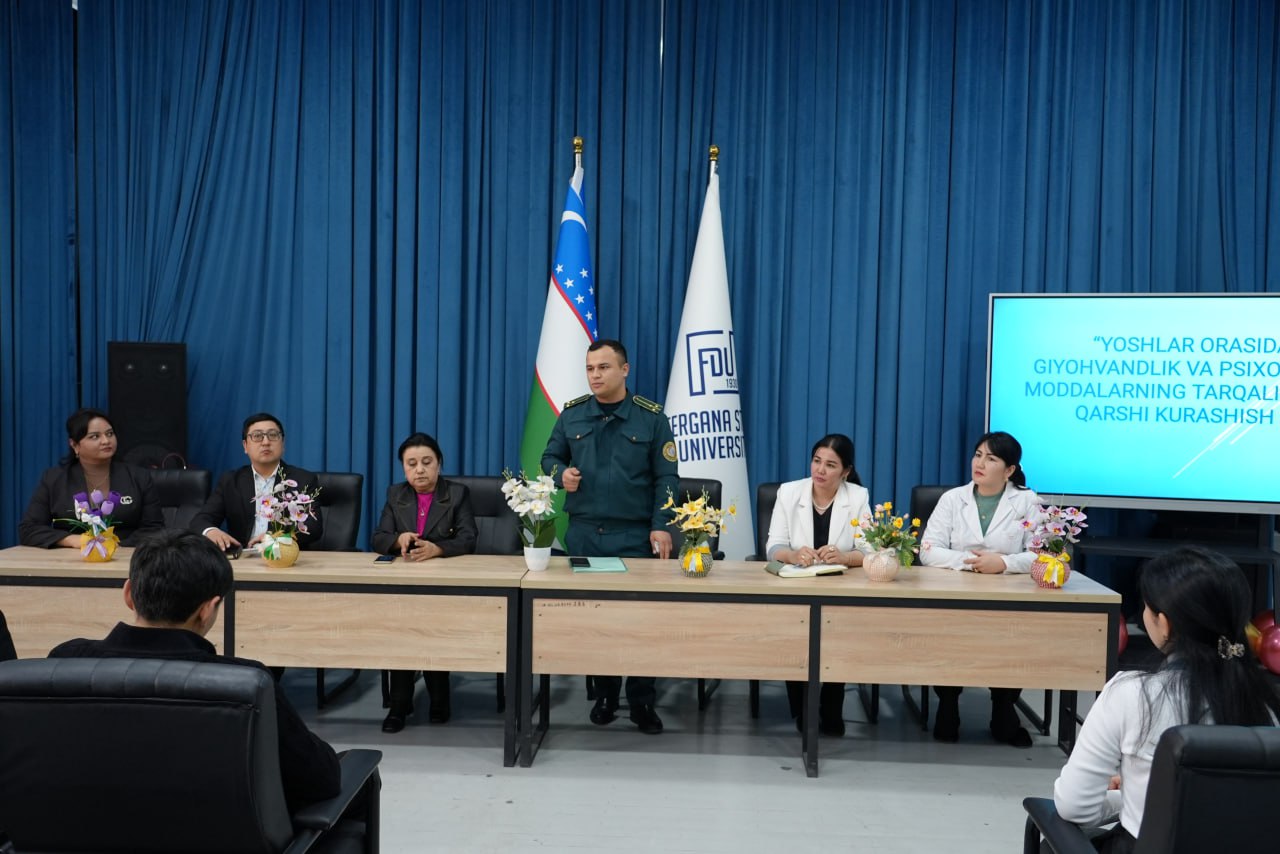 “Yoshlar o‘rtasida giyohvandlik va psixotrop moddalarning tarqalishiga qarshi kurashish” oyligi doirasida Fargʻona davlat universitetida hafta davomida bir qator profilaktik va targ‘ibot tadbirlari tashkil etildi.