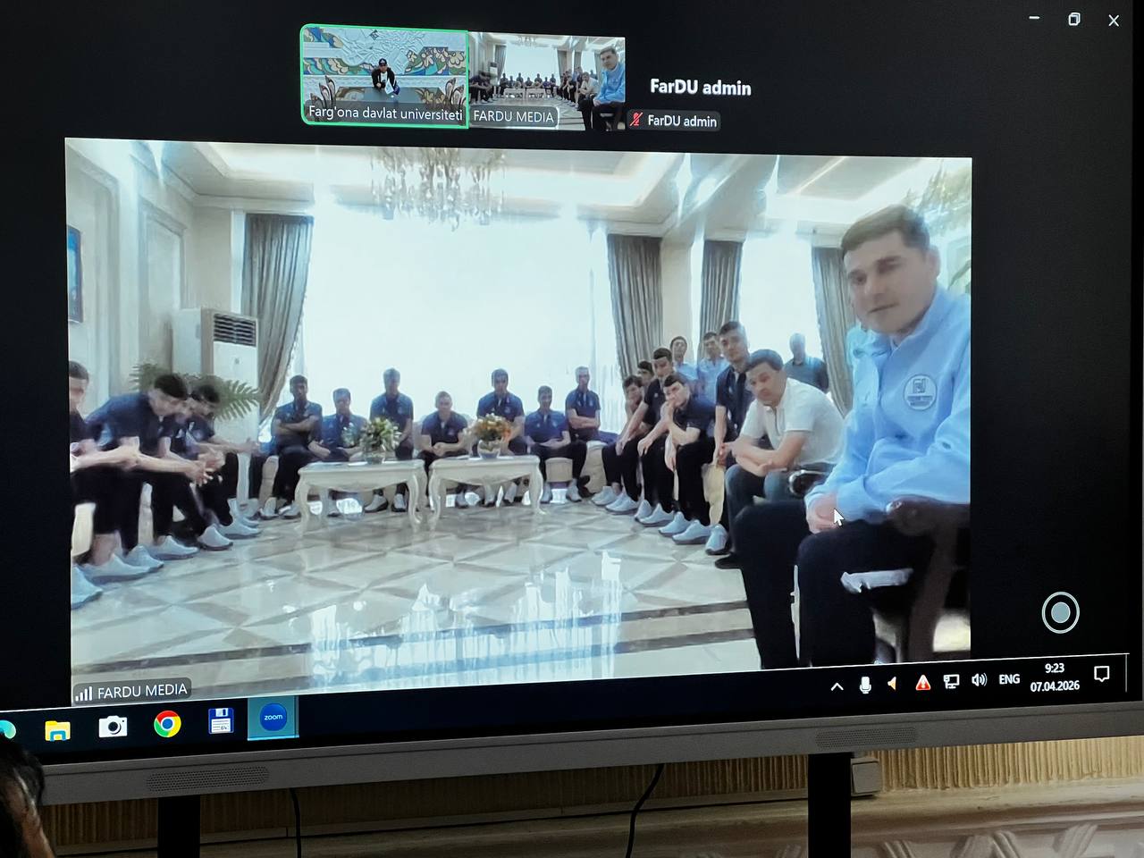 Ushbu mas’uliyatli o‘yin oldidan jamoani qo‘llab-quvvatlash maqsadida universitet rektori Bahodirjon Shermuhammadov “FarDU” futbol klubi vakillari bilan onlayn uchrashuv tashkil etdi. Samimiy ruhda o‘tgan muloqot davomida jamoa a’zolariga ishonch va motivatsiya bag‘ishlovchi so‘zlar bildirildi.