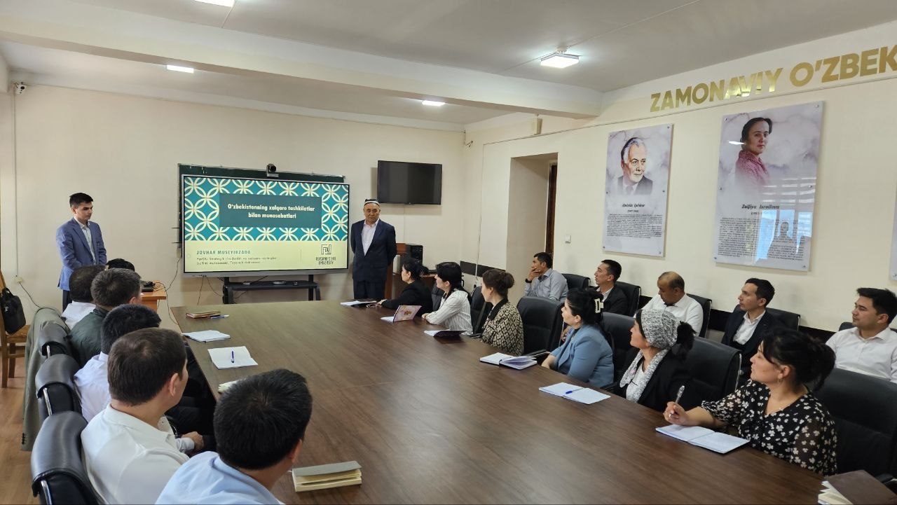 Mashg‘ulot davomida tinglovchilarga O‘zbekistonning xalqaro maydondagi o‘rni, turli xalqaro tashkilotlar bilan hamkorlik aloqalari, shuningdek, xorijiy davlatlar bilan iqtisodiy va siyosiy munosabatlarning shakllanish bosqichlari haqida batafsil ma’lumotlar berildi. Mavzu doirasida real misollar, tahliliy yondashuvlar va zamonaviy geosiyosiy jarayonlar muhokama qilinib, ishtirokchilar faol savol-javoblar orqali jarayonga jalb etildi.