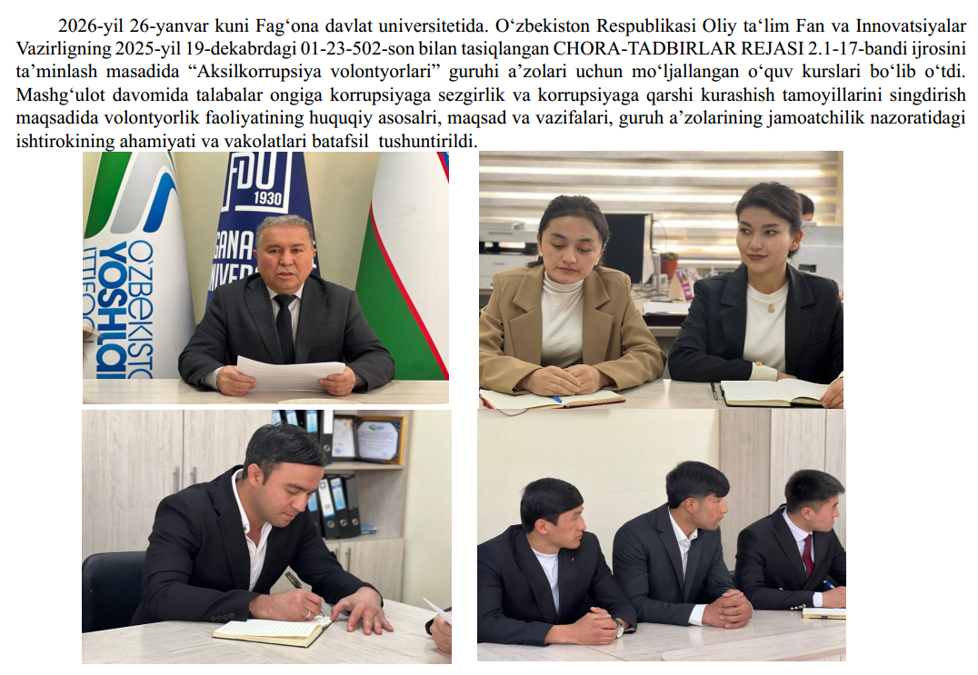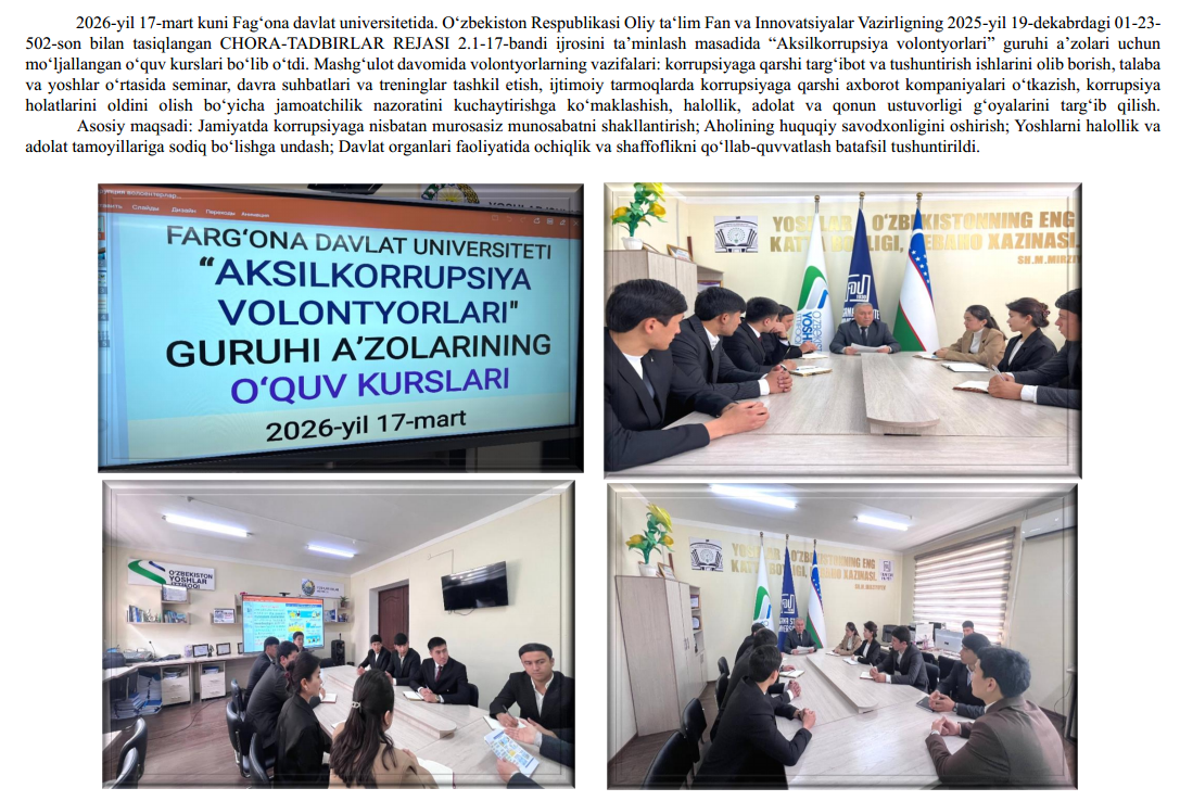 Farg‘ona davlat universiteti Korrupsiyaga qarshi kurashish